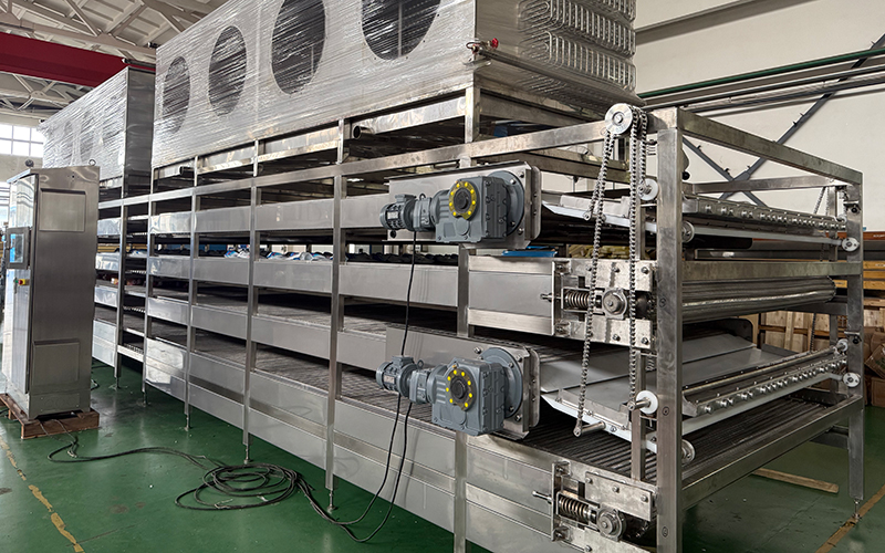 Sistem ini dirancang dengan kapasitas olah 2.600 kg/jam, memungkinkan pembekuan efisien untuk berbagai jus buah dan puree. Struktur multi-layer belt tidak hanya meningkatkan produktivitas, tetapi juga secara signifikan mengurangi konsumsi energi, memungkinkan pelanggan mencapai target produksi yang stabil dan hemat energi.
