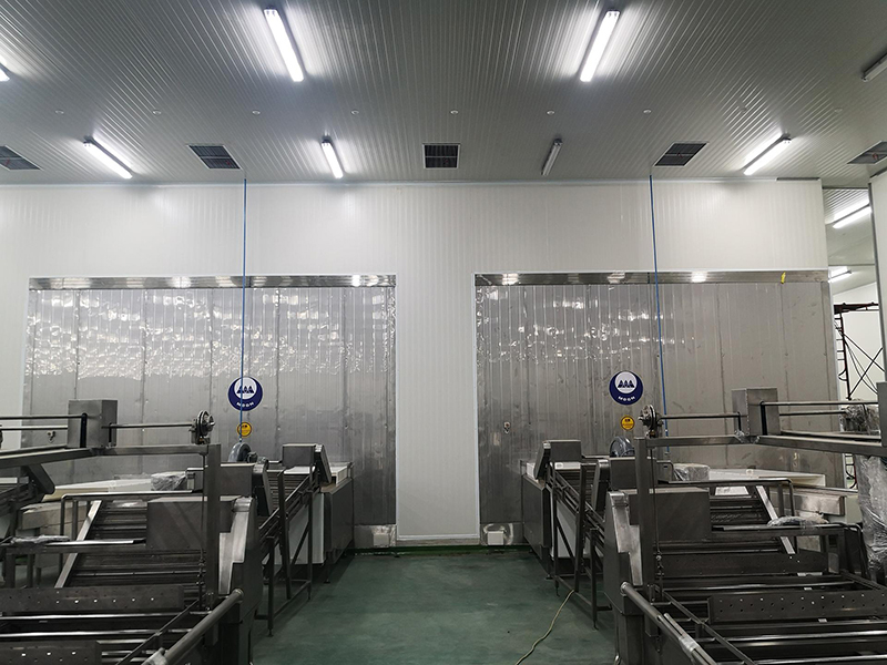 - Low-Temperature Cold Rooms (Ruang Dingin Suhu Rendah): Lima ruang masing-masing dengan kapasitas 200 ton, khusus untuk pembekuan produk seperti kacang polong dan persik kuning, dipertahankan pada -20°C.