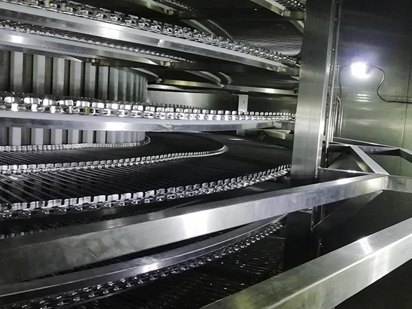 Dirancang dan diproduksi oleh MOON-TECH, struktur mesh-belt pada spiral memungkinkan pemindahan produk yang halus dan terkendali serta minim benturan mekanis. Konfigurasi ini sangat ideal dalam menangani produk-produk rapuh di lingkungan pemrosesan bersuhu dingin.